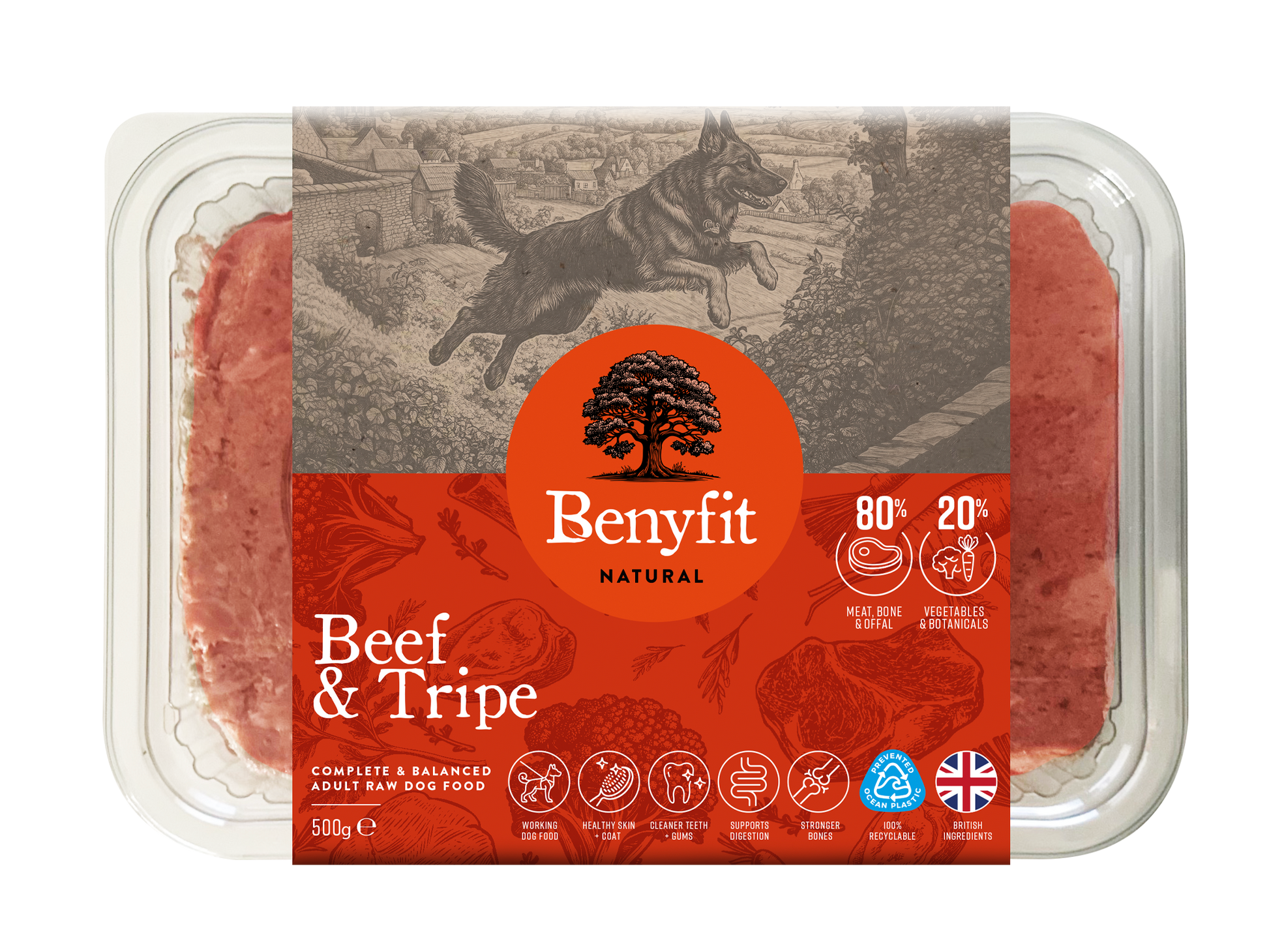 Mouth-watering goodness in every meal and packed with good enzymes and healthy bacteria. Each meal contains 80% beef muscle meat, bone, and green lambs’ tripe and 20% fresh vegetables and botanicals. Your dog will devour this nutritious, high-quality recipe and you will love to see your dog so satisfied at every mealtime. For a dog with healthy skin, cleaner teeth and gums, glossy coat, better digestion, and strong bones, Benyfit Natural is the only raw dog food you need to feed.