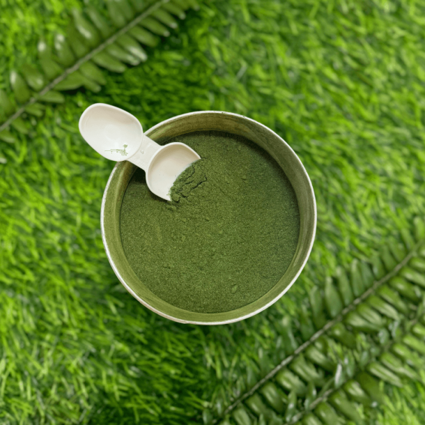 Barley Grass has been used to alleviate various conditions including arthritis, inflammation, asthma, anaemia, hypertension, diabetes, blood clots, obesity, impotence and kidney problems in humans Our organic barley grass powder is loaded with active enzymes that are often missing in today’s processed dog foods. Sprinkling Barley Grass on your dog’s food will not only enhance the taste, but will also enable more nutrients to be absorbed. Features Neutralises free-radicals, pesticides and preservatives Nutritionally balanced Great source of minerals. Very high living chlorophyll levels Loaded with active enzymes