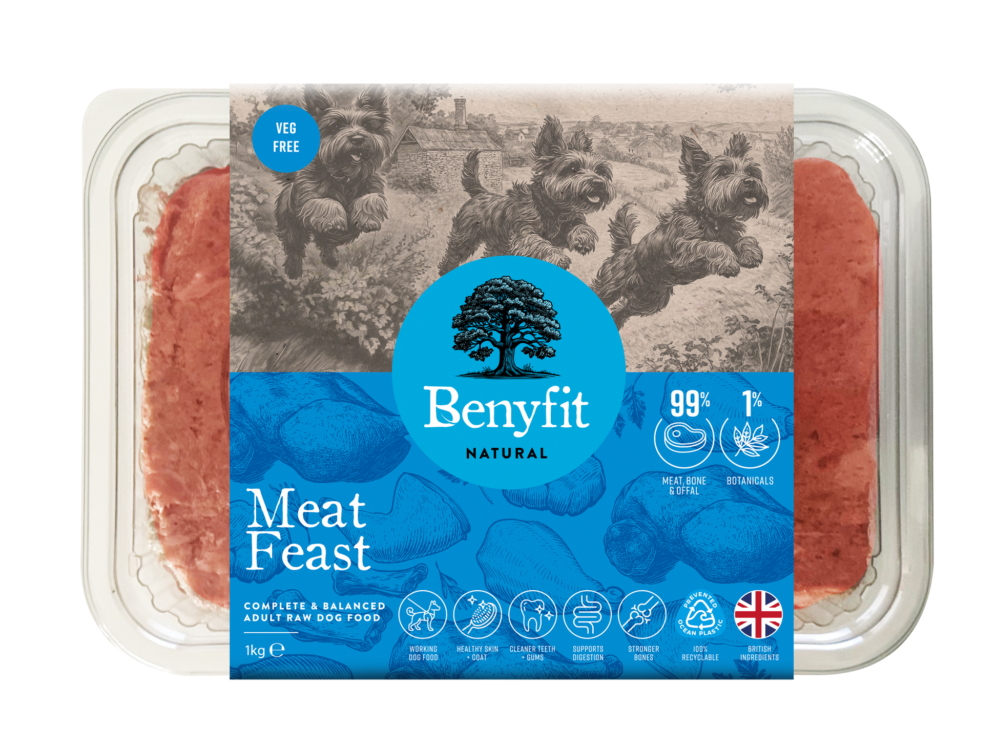 Benyfit Natural Meat Feast Turkey is ideal for anyone wishing to feed a nutritionally balanced raw dog food diet free of vegetables - for any reason. It will result in visible signs of reduced itching and skin irritations as well as healthy skin, teeth and gums, glossy coat, better digestion and strong bones. Meat Feast Turkey raw dog food recipe contains 99% turkey meat, bone and offal and 1% botanicals.