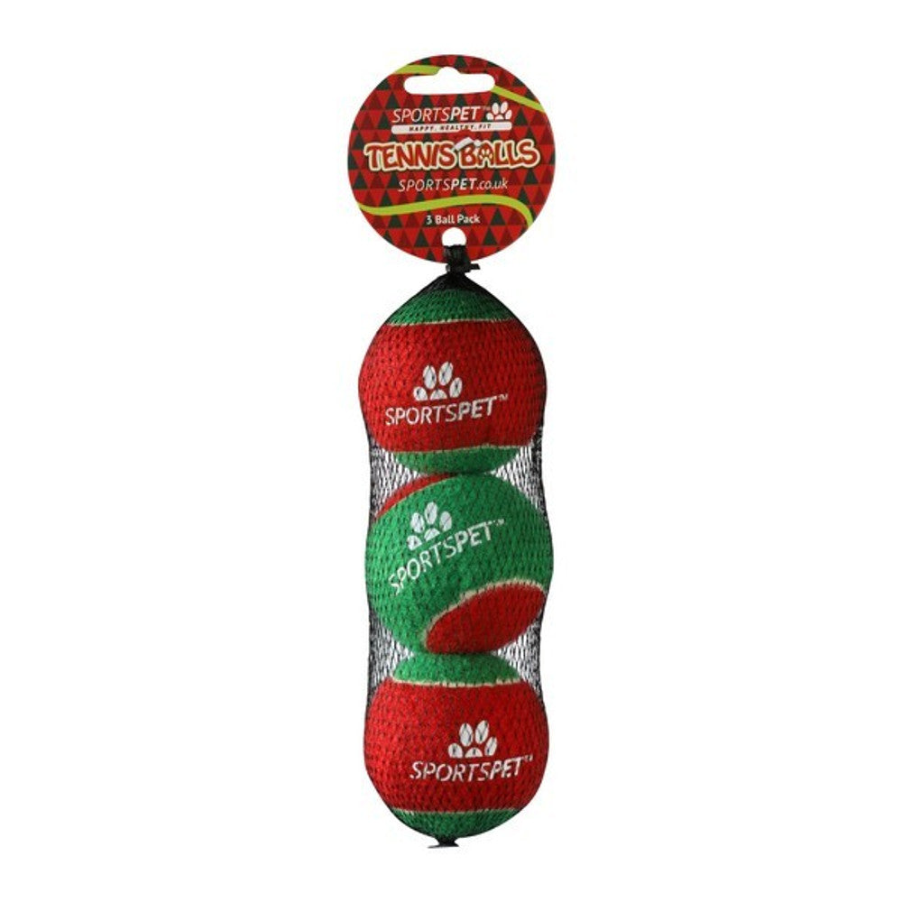 Sportspet Xmas Red Green Tennis Balls 3 Pack