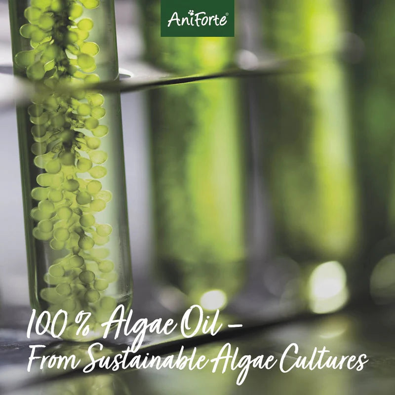 Our algae oil for dogs, cats and horses is the vegan alternative for animals with fish allergies or intolerances. Algae have a unique photosynthesis and have a particularly high content of omega-3 fatty acids.