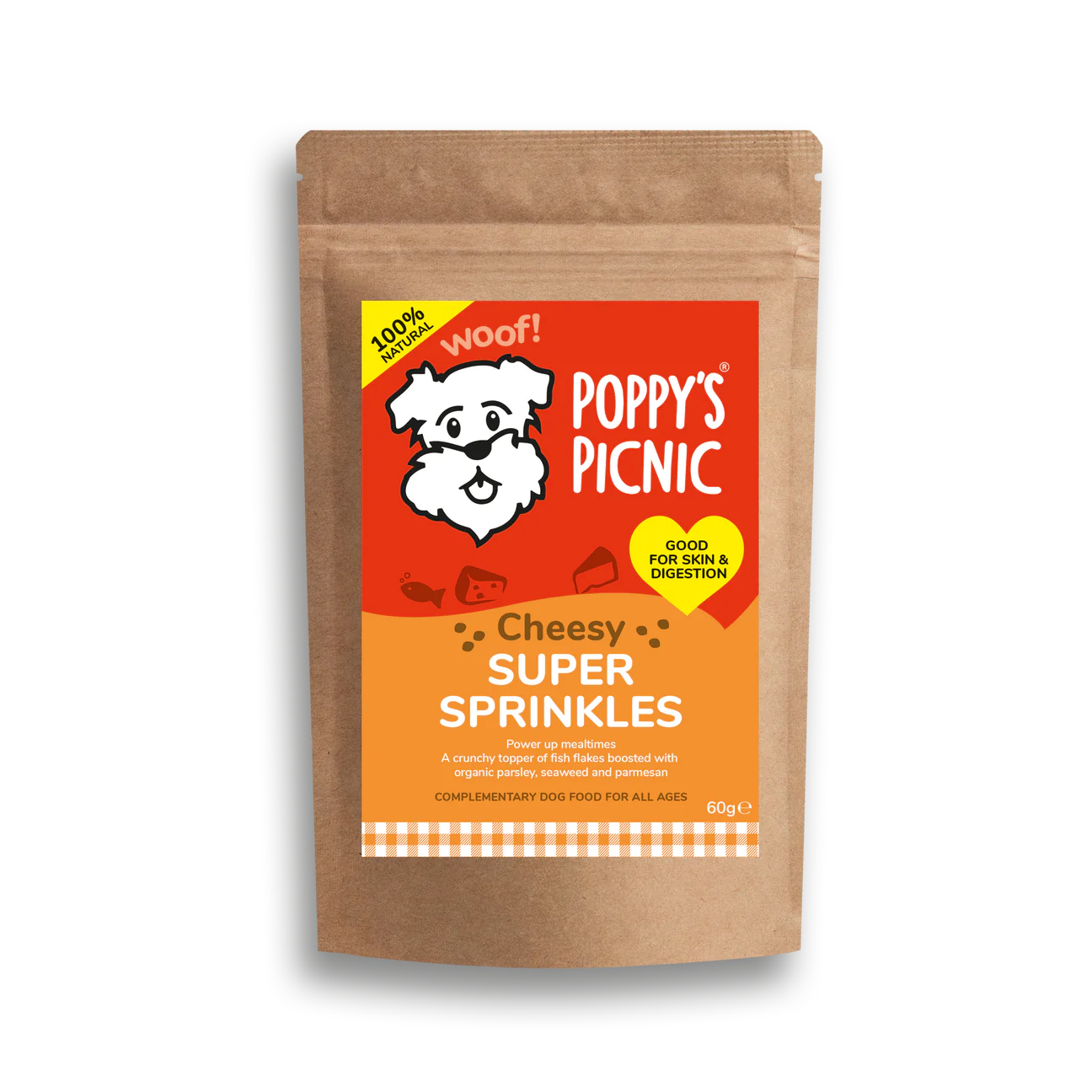 Made from sustainably sourced whitefish skins, seaweed and organic parsley, CHEESY SUPER SPRINKLES is a crunchy topping to add extra flavour and texture to your dog's meals with a fragrant cheesy parmesan twist