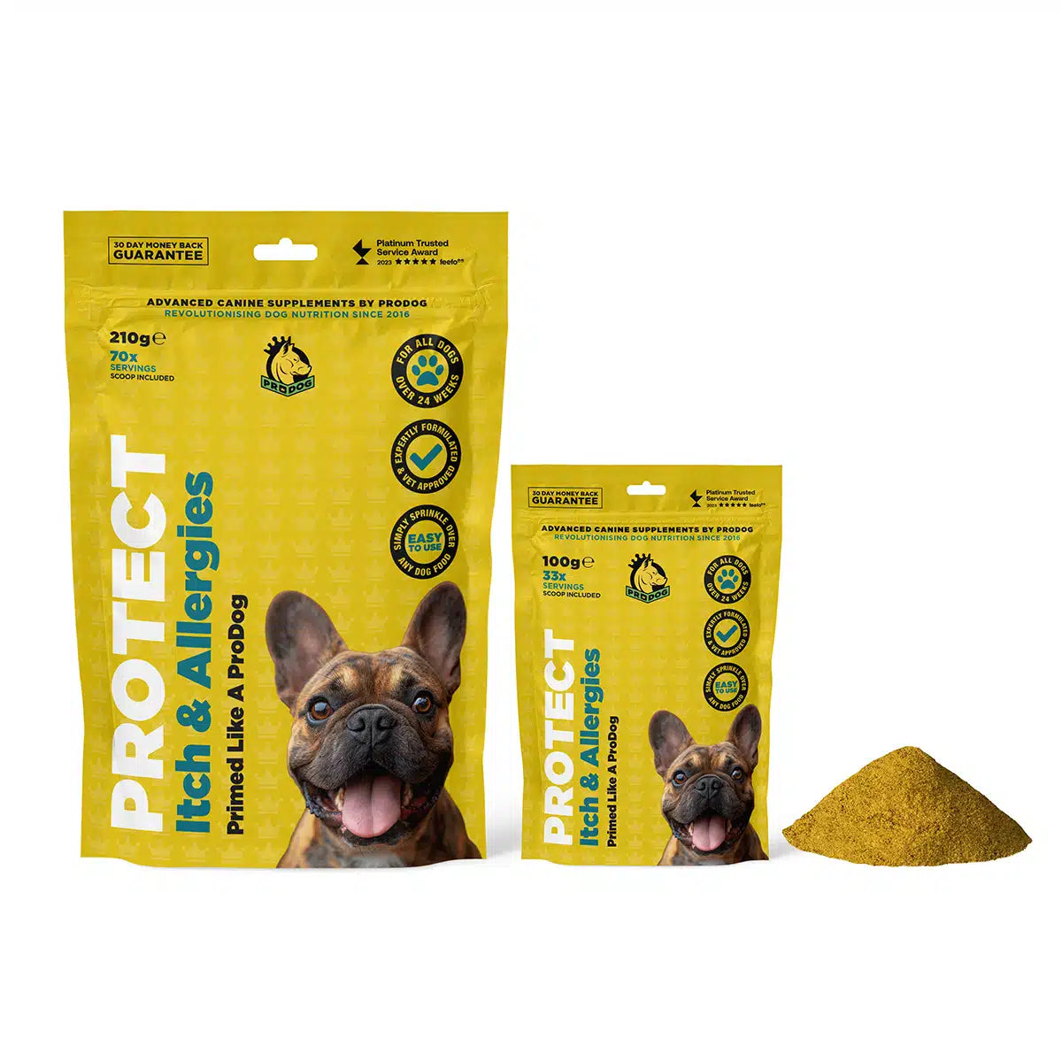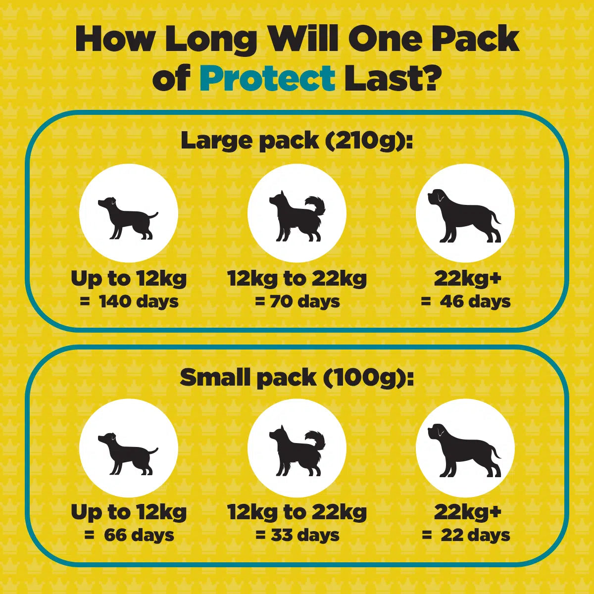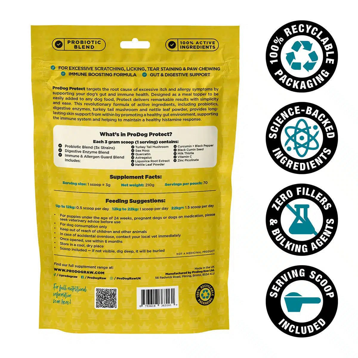 Fortified with an exclusive fusion of prebiotics, probiotics, digestive enzymes, and our unique healthy skin support blend, includes quercetin, turkey tail mushrooms, turmeric, sea moss, and nettles. Protect is a nutrient dense meal addition, precisely balanced by specialist canine nutritionists to help maintain healthy skin and coat, thereby minimising discomfort caused by allergies and intolerances.