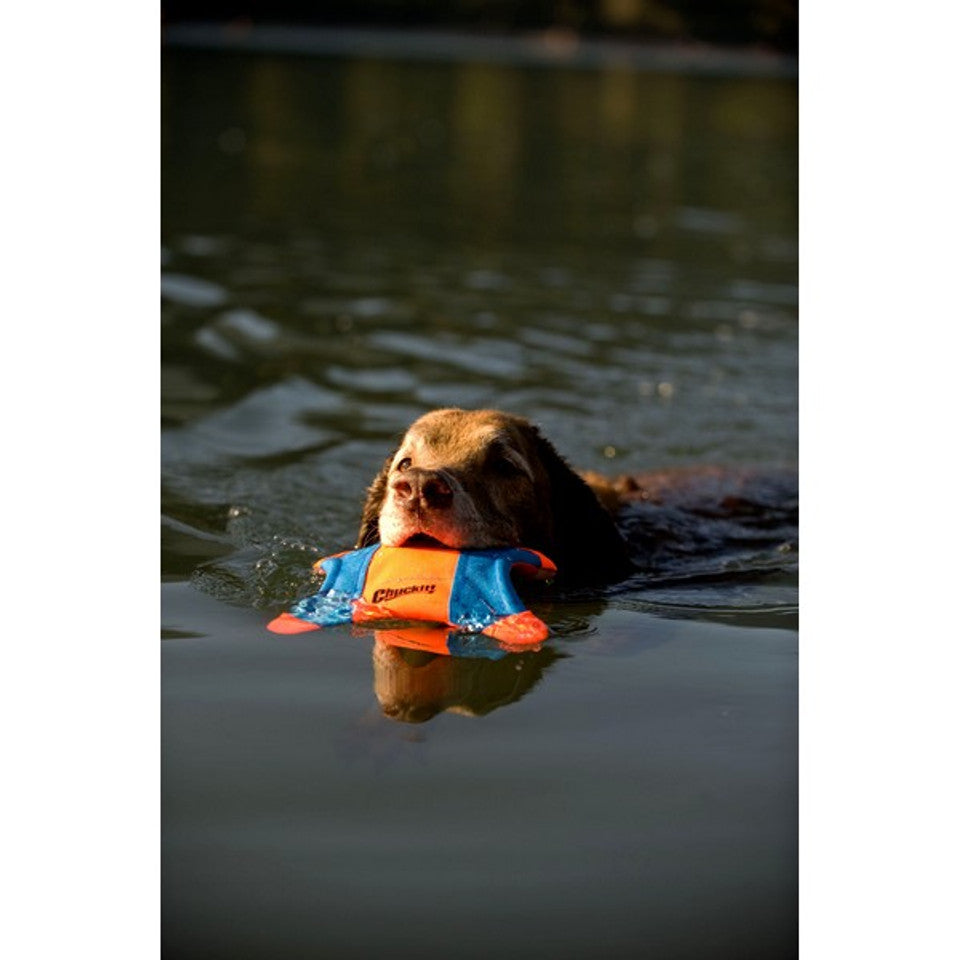 The Chuckit!® Flying Squirrel® is the perfect fetch toy for dogs who love to fetch flying discs! Just grab the squirrel by the paw and launch it like you would a flying disc toy. Your dog will love chasing after this squirrel as it glides through the air! Covered in durable; bright canvas fabric; the Flying Squirrel is gentle on your dog's mouth during fetch and also has glowing paws that help make it visible at night. Make memories and build bonds with your dog through fetch.