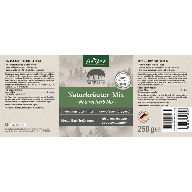 Natural Herb Mix provides your dog with essential enzymes, chlorophyll, vitamins, and natural antioxidants, which all support your pet’s healthy metabolism and a strong immune system.