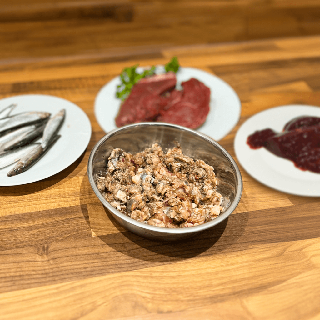 Made with 100% UK beef tripe, beef liver and Atlantic Sprats and nothing else, our mince has a great texture that dogs love, super fresh made from frozen material not defrosted ensures our food smells great, tastes great, looks great