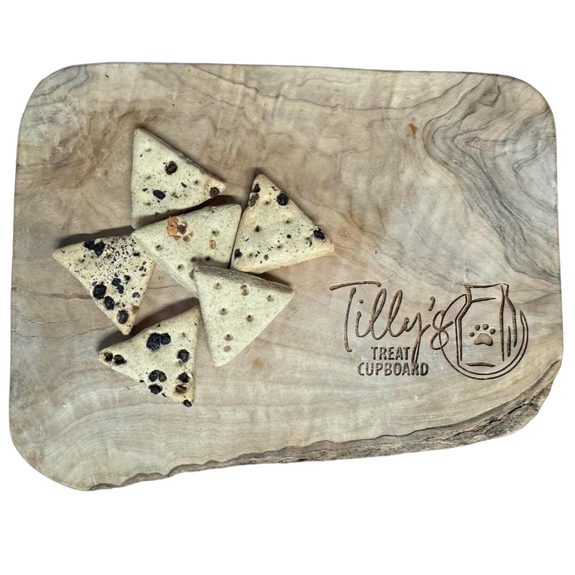 Monty's Elderberry & Apple biscuits offer a fruity treat and provide more variety for snacking in between meals. The treats are gently oven baked.