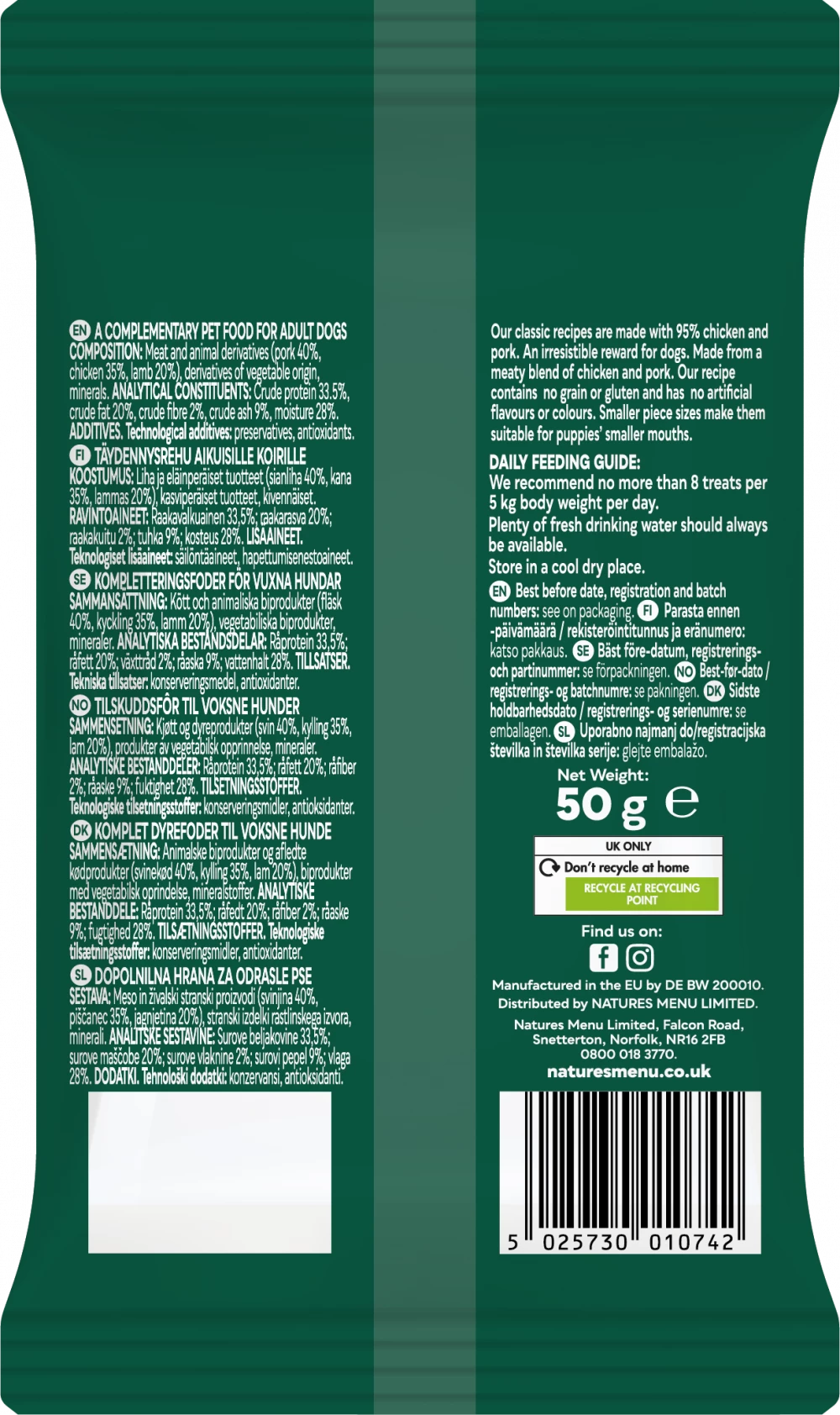 The ultimate real meat training treat. Made with 95% real meat, including lamb and chicken. An irresistible reward for dogs.