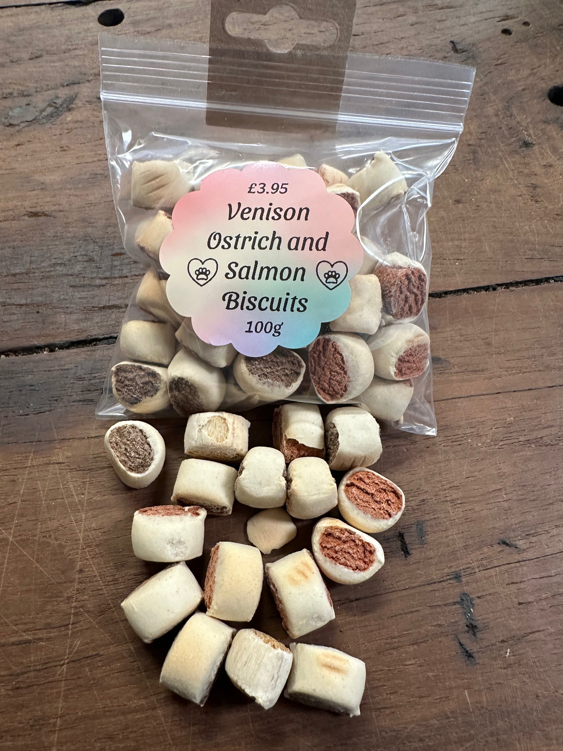 Handy resealable pack of Venison, Ostrich and Salmon Biscuits
