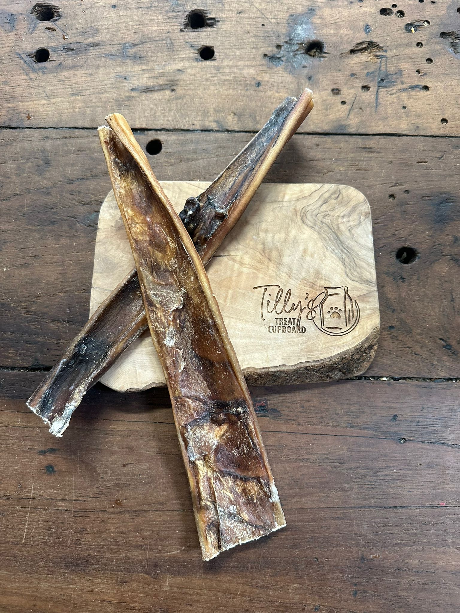 Dehydrated camel skin is a great option for all dogs. Tougher to get through than Lamb or Goat skins.