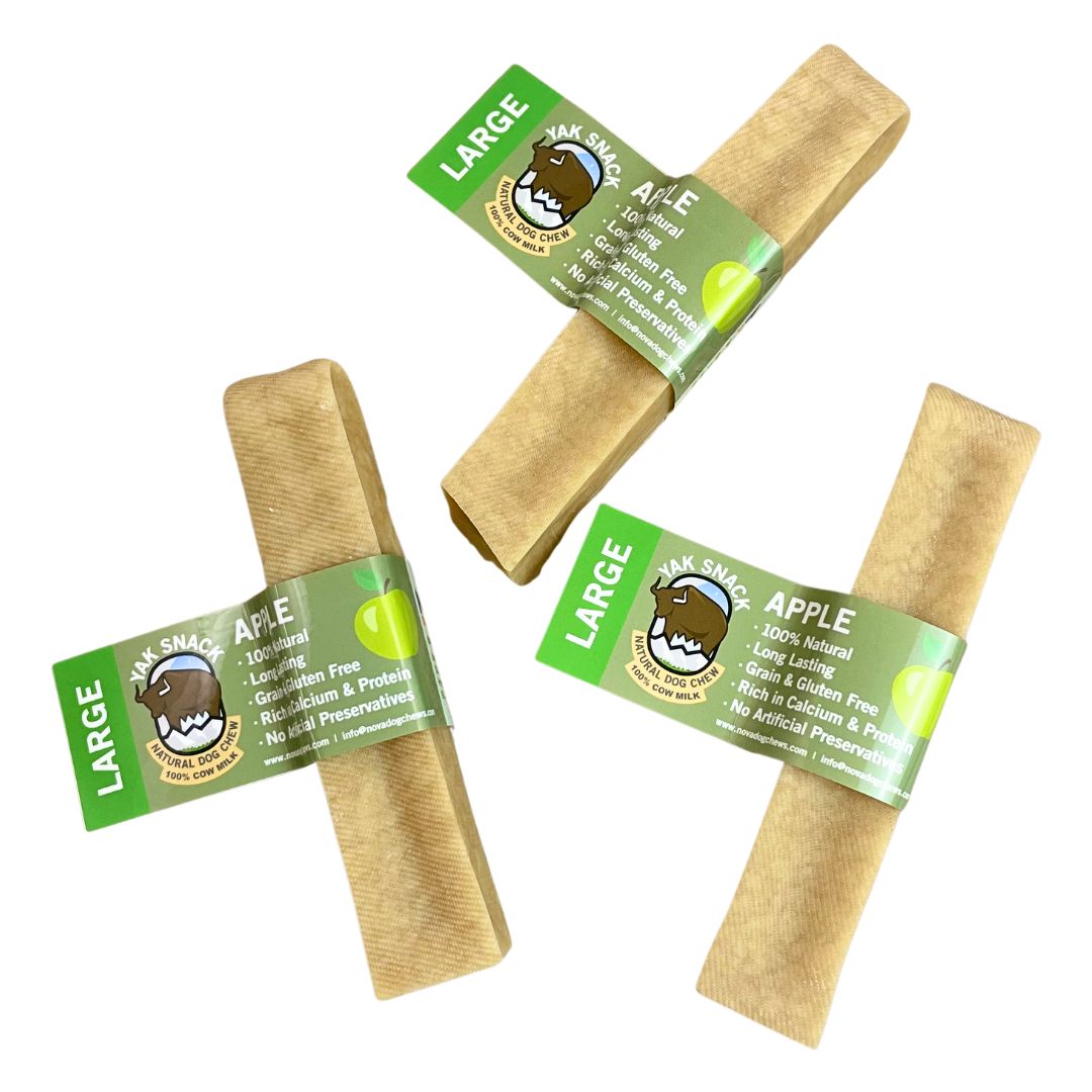 Take the Yak away from your dog when it is small enough to swallow. The remaining piece can be put in the microwave for approximately 45 seconds or until puffed. (based on 800watt microwave). The it has cooled it can be fed to your dog.