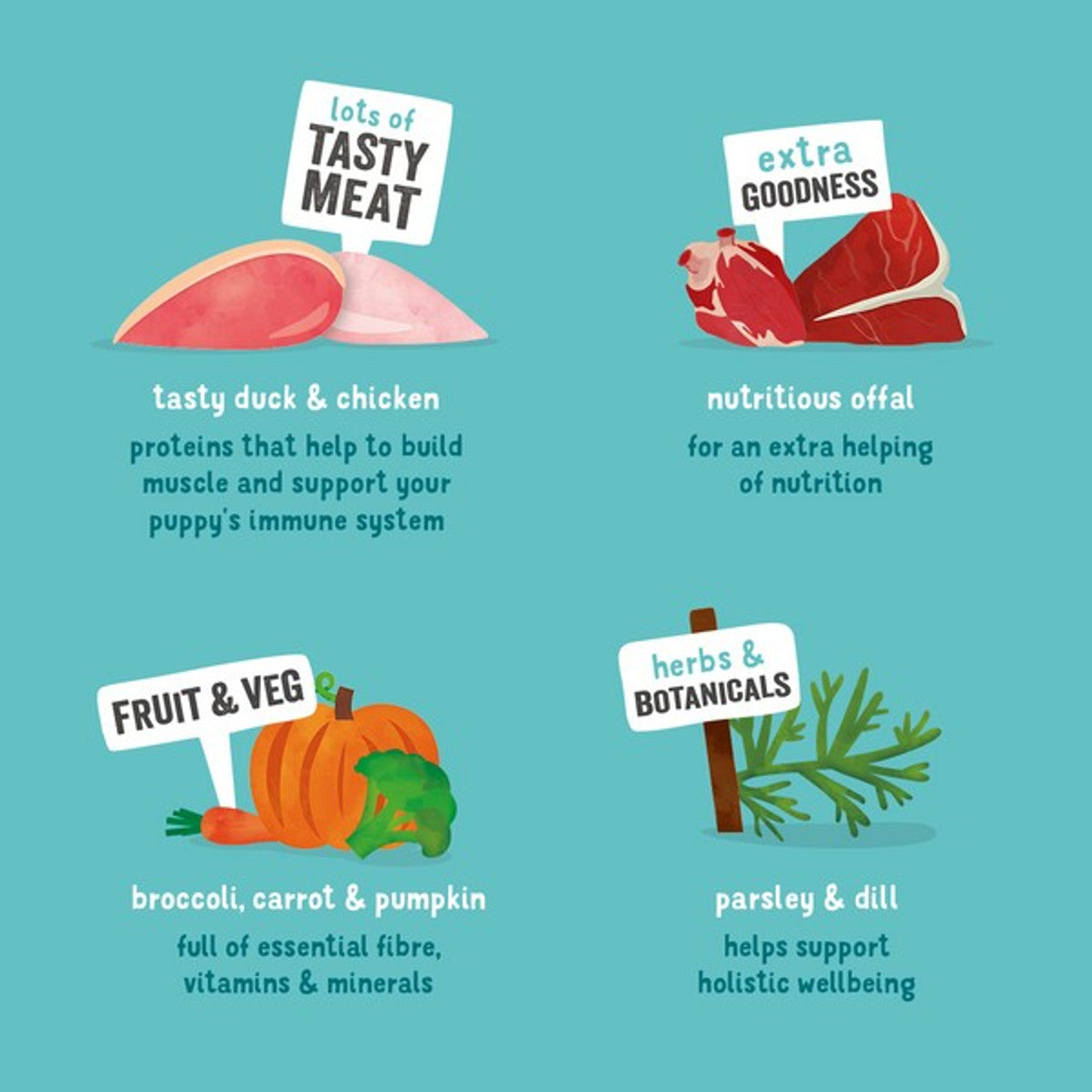 WET FOOD PACKED WITH FRESH MEAT & NUTRITIOUS OFFAL: rich in fresh duck and chicken, great sources of high quality PROTEINS that support a good IMMUNE SYSTEM & STRONG BONES & MUSCLES. We combine the meat with noble offal for an extra dose of natural nutrients. Our recipes include a mix of naturally nutritious fruits and vegetables, herbs and botanicals. In this recipe CARROT, BROCCOLI, APPLE & PEAS provide FIBER, essential VITAMINS & ANTIOXIDANTS, POTASSIUM, MAGNESIUM, CALCIUM and beta-carotene.