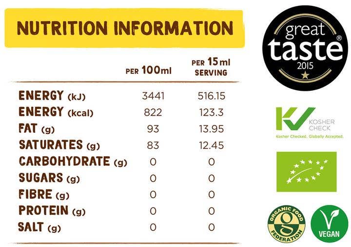 This oil is made from organic coconuts, extracted using a cold press method, to help keep in the goodness. This means it is still raw (kept below 46C). It is kept premium by using only Extra Virgin coconut flesh, and free from chemicals to be unrefined.