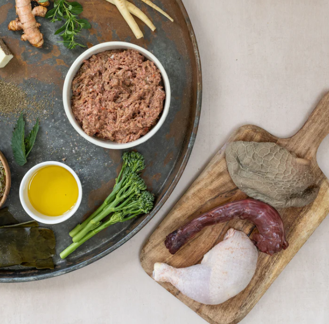 A truly satisfying and healthy raw dog food recipe to assist dogs with sensitive stomachs, those with pancreatitis or prone to forming bladder stones as it contains no offal, is low in purine and low fat, which also makes it perfect for overweight working dogs.