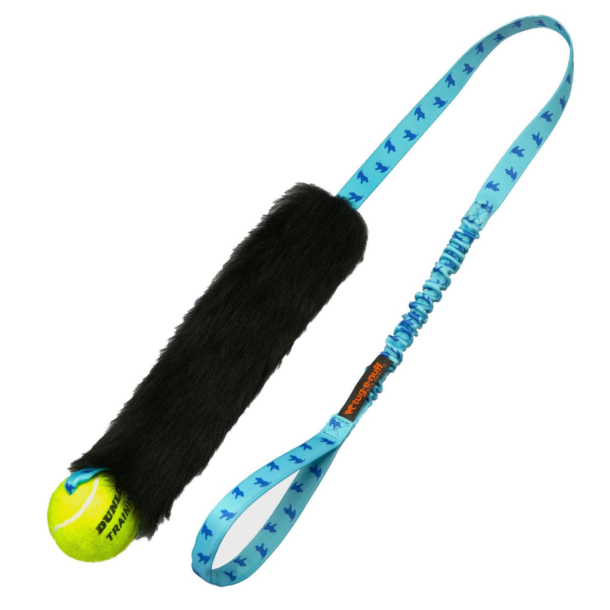 What do you get if you combine our most popular chaser toy with our signature bungee handle, sheepskin and a tennis ball? A tug toy that has everything, that's what! There really is no limit to the fun that can be had with this toy. Whether you and your dog play tug, chase or fetch you'll find this a durable, versatile addition to your training kit. The longer handle is ideal for puppies and older dogs who like to tug at a distance, while the British sheepskin is super enticing, and the tennis ball gives that all-important weight for throwing. As with all our bungee tug toys, the shock cord handle offers excellent grip and reduces the risk of jarring the handler's shoulder or your dog's neck during play.